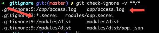 ➜ gitignore git:(master) ✗ git check-ignore app/access.log/