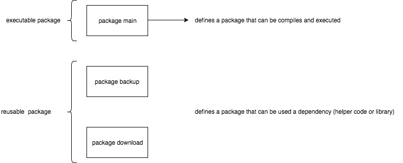 If your package declaration starts with main, it means you are creating an executable package. Any name other than main will be a reusable package.