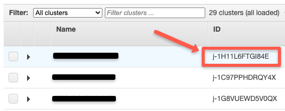 The only input required for this script is the EMR cluster-ID. You can get this ID from the EMR cluster dashboard as shown below.
